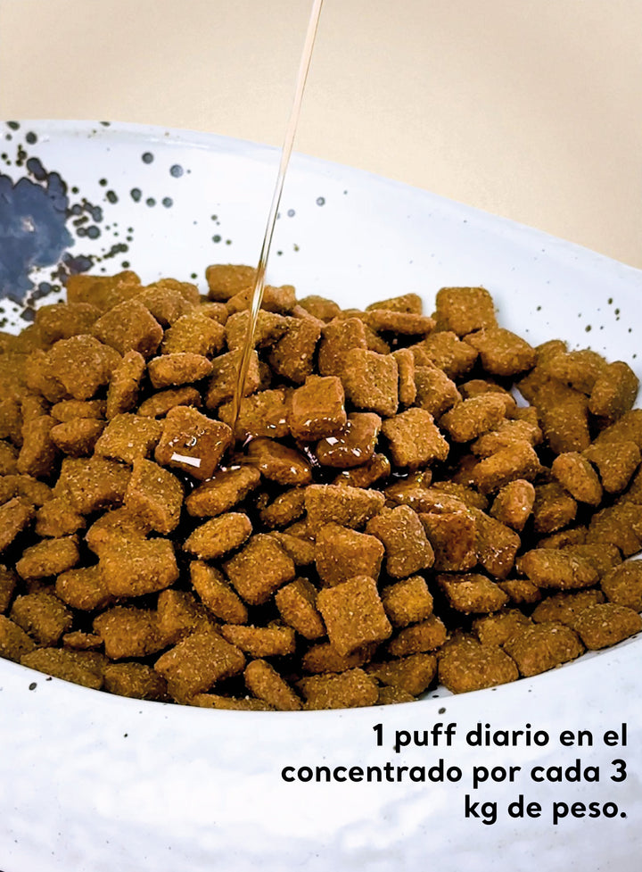 Para tizu (perro): Agregarle un puff en el concentrado de tu tizu al día, por cada 3 kg de peso.