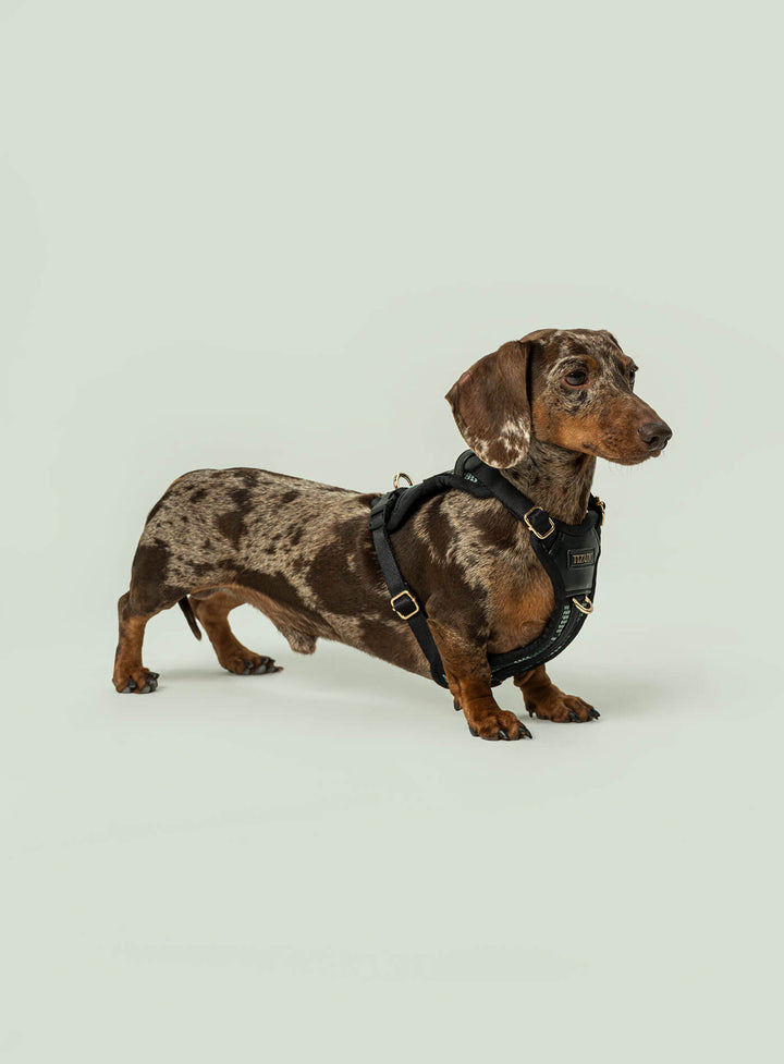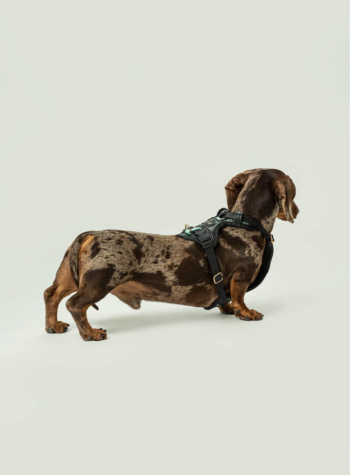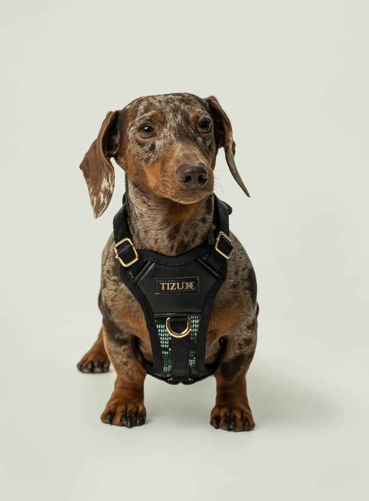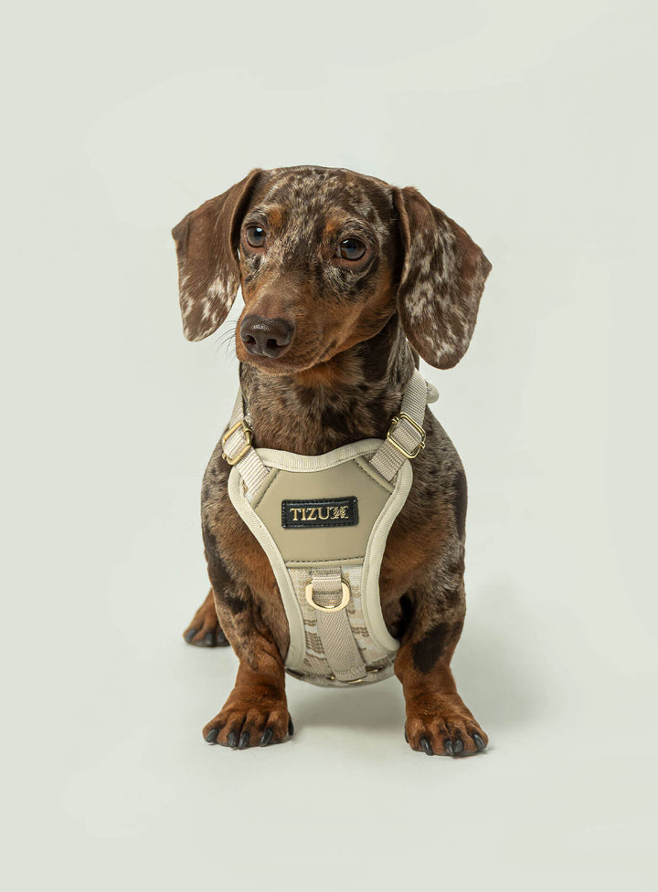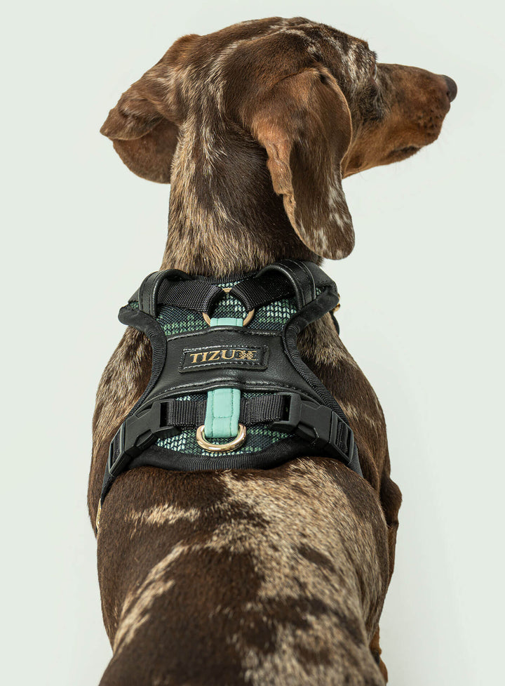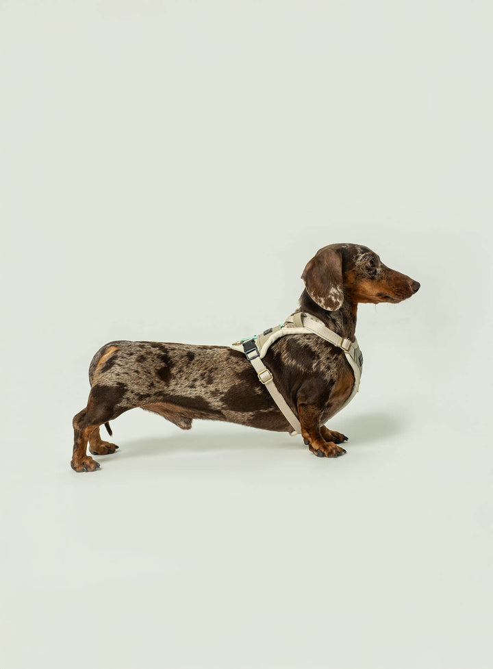 Corso inspirado en las pieles de los animales que habitan en climas cálidos como reptiles y felinos, tomando los patrones propios de su aspecto para traerlos a esta pieza artesanal y bella que está construida a base de tela tipo lona y reatas para brindar mayor resistencia y seguridad.