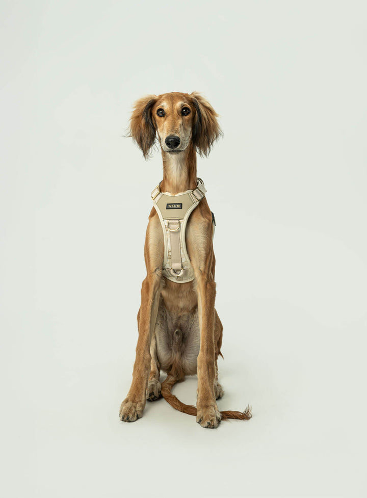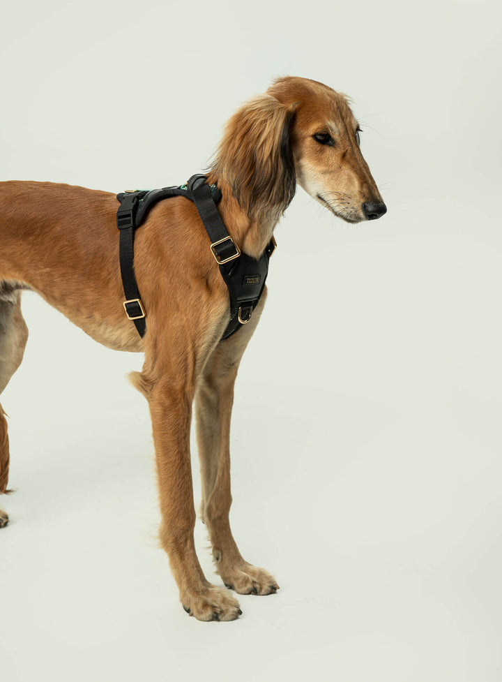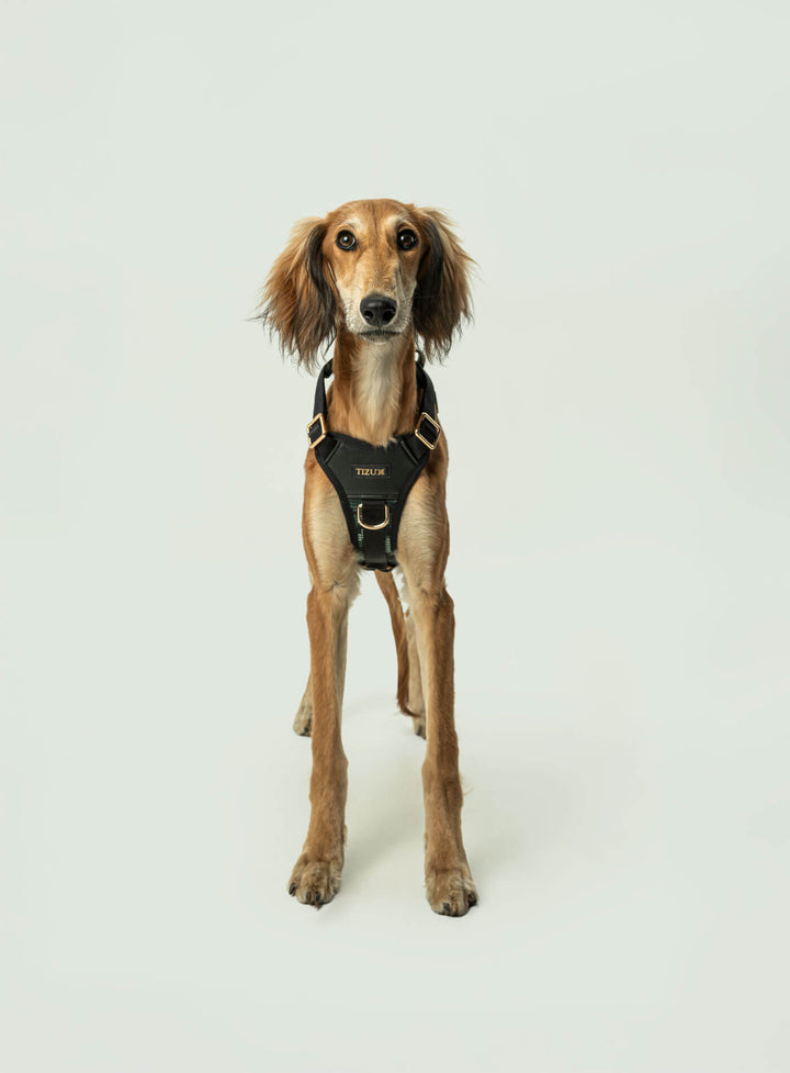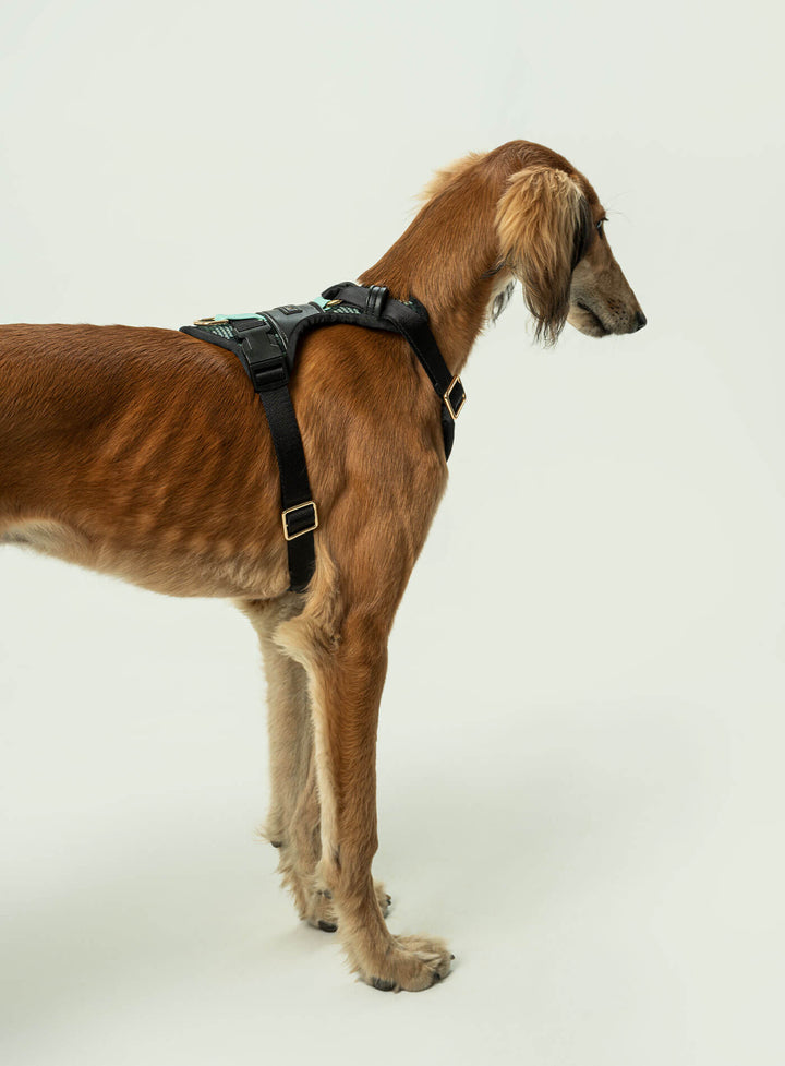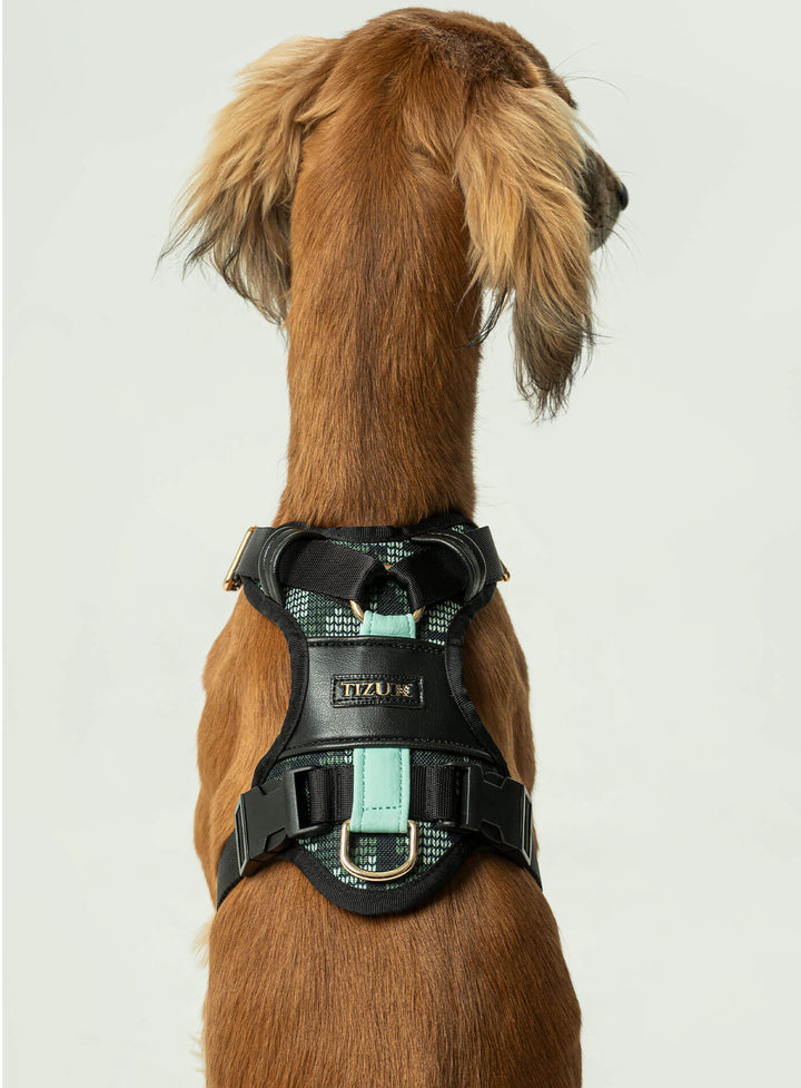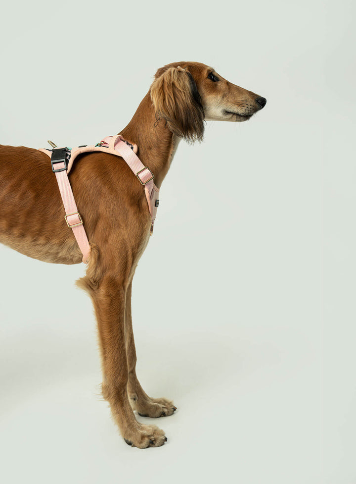Corso inspirado en las pieles de los animales que habitan en climas cálidos como reptiles y felinos, tomando los patrones propios de su aspecto para traerlos a esta pieza artesanal y bella que está construida a base de tela tipo lona y reatas para brindar mayor resistencia y seguridad.