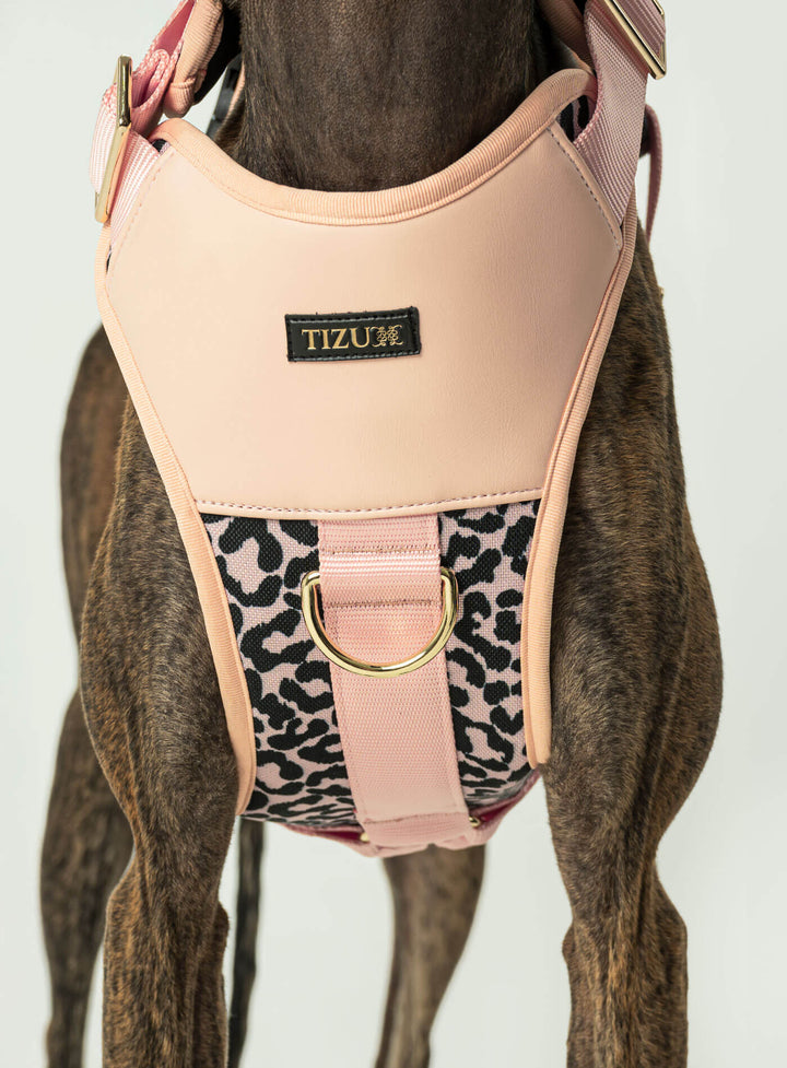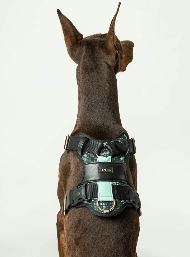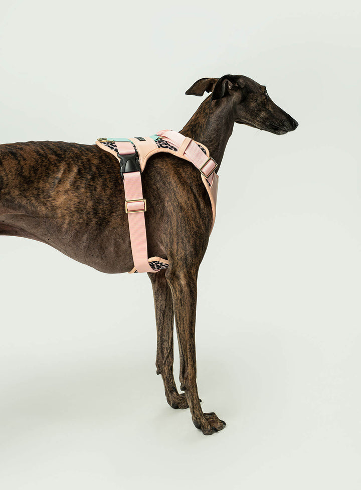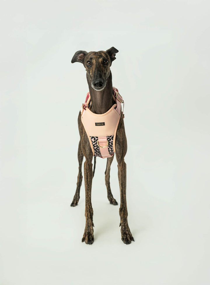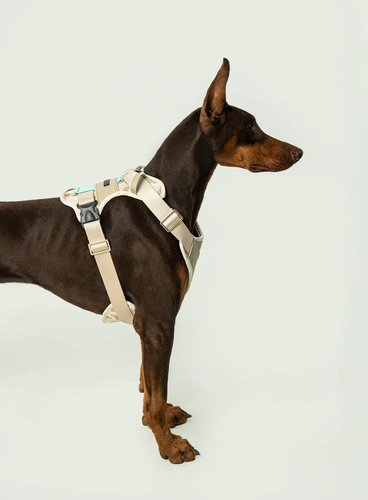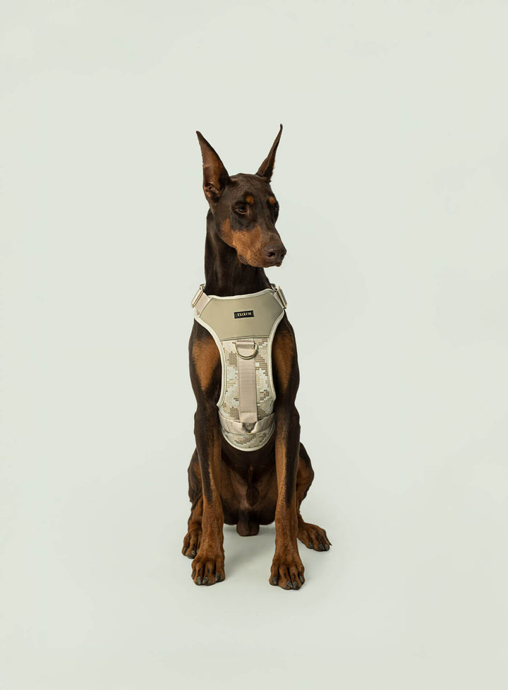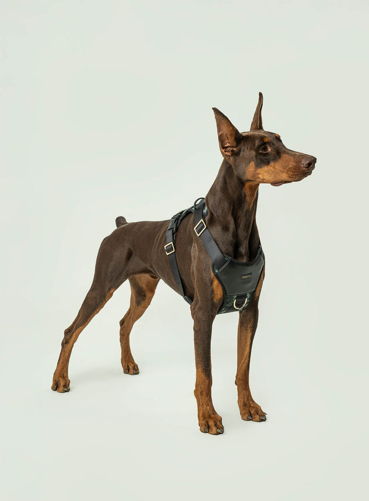 Corso inspirado en las pieles de los animales que habitan en climas cálidos como reptiles y felinos, tomando los patrones propios de su aspecto para traerlos a esta pieza artesanal y bella que está construida a base de tela tipo lona y reatas para brindar mayor resistencia y seguridad.